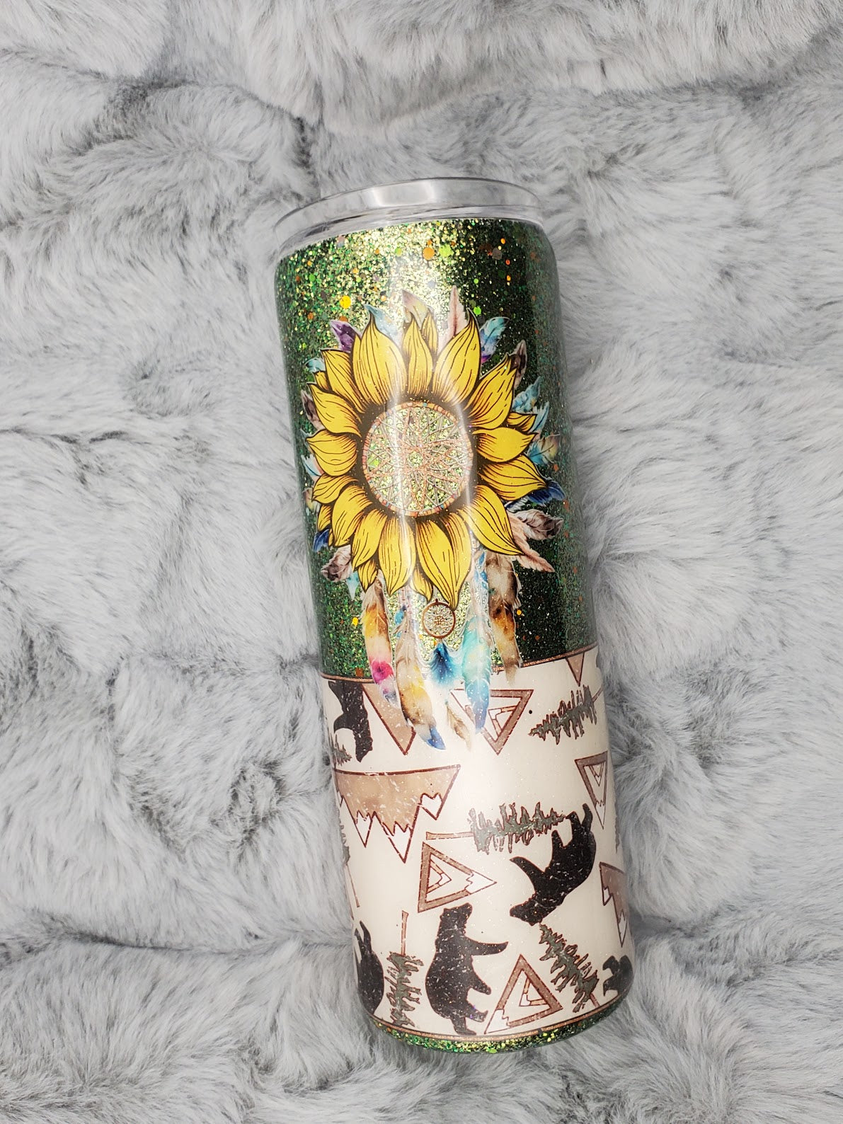 Sunflower Dreamcatcher Glitter Tumbler 20oz Skinny