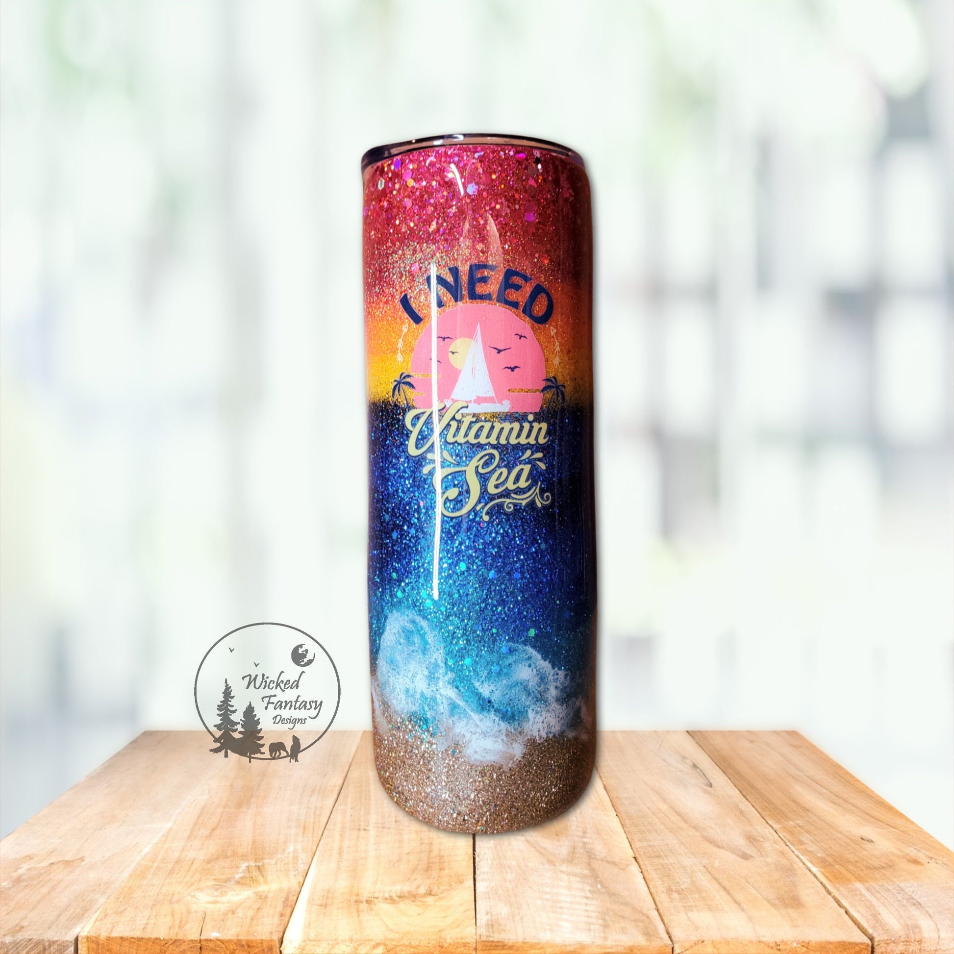 Featuring "I need Vitamin Sea" on a 20oz skinny tumbler.