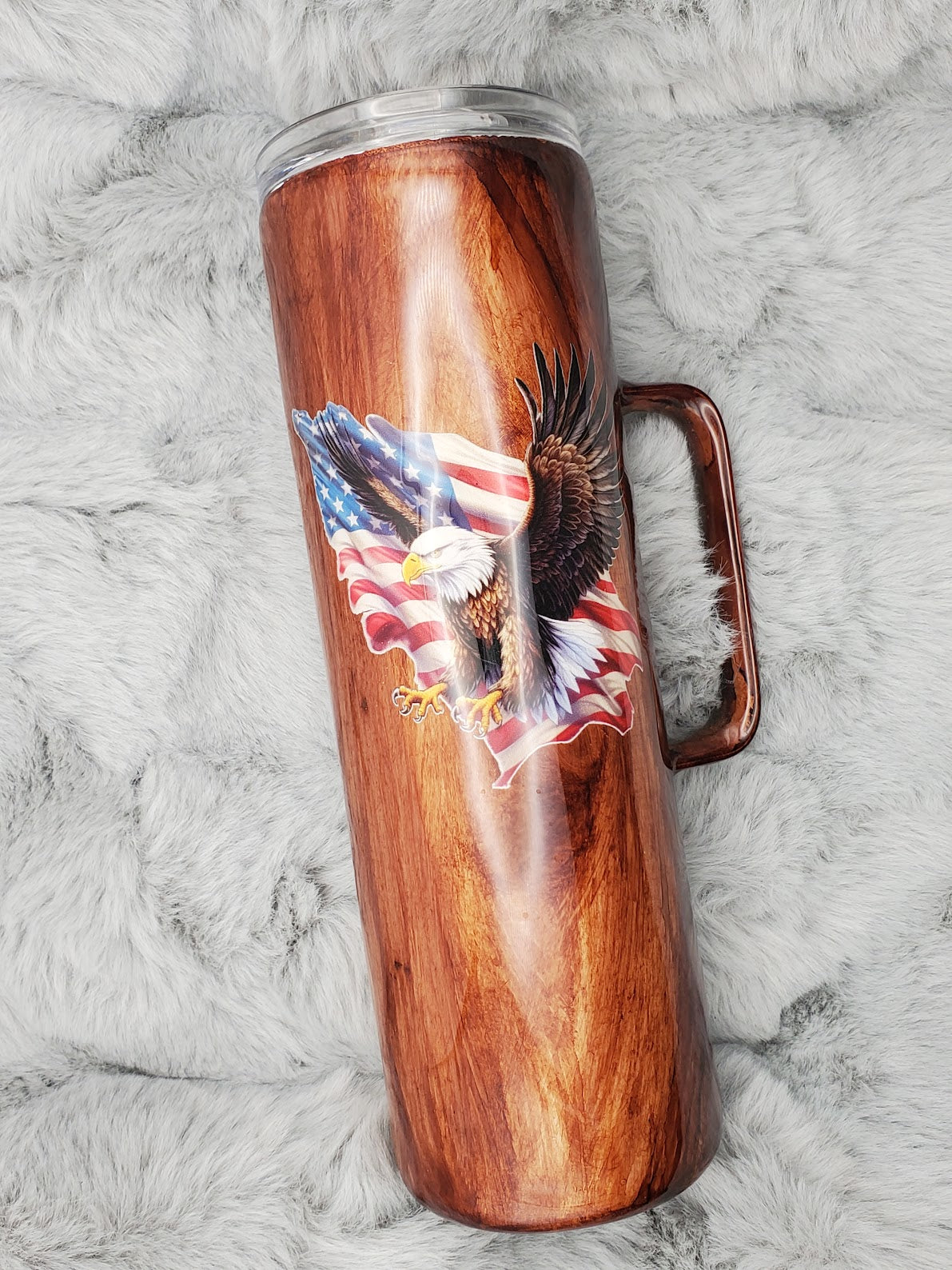 Eagle and American Flag 30oz Skinny Tumbler with Handle