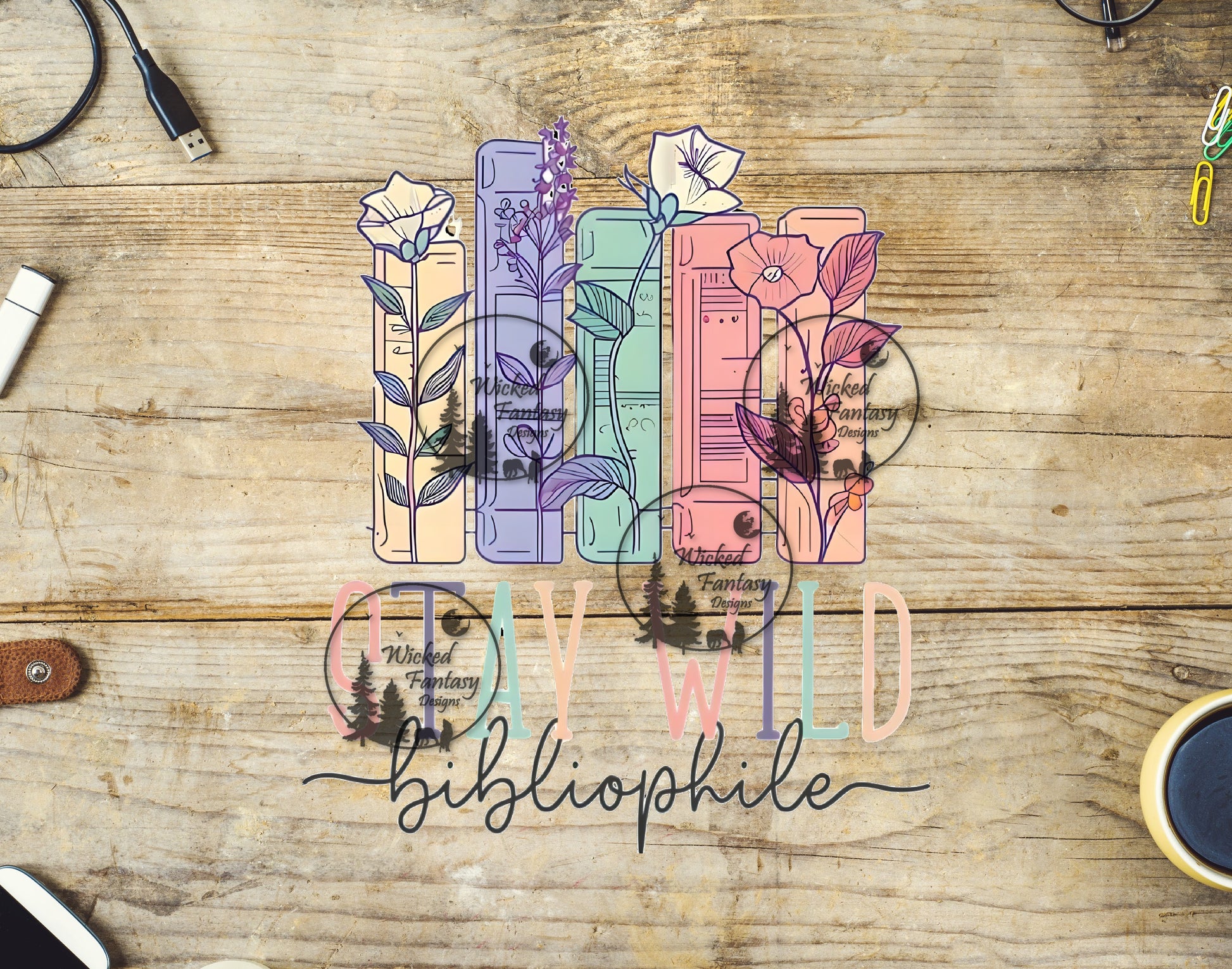UVDTF Decal Stay Wild Bibliophile Pastel Books Flowers