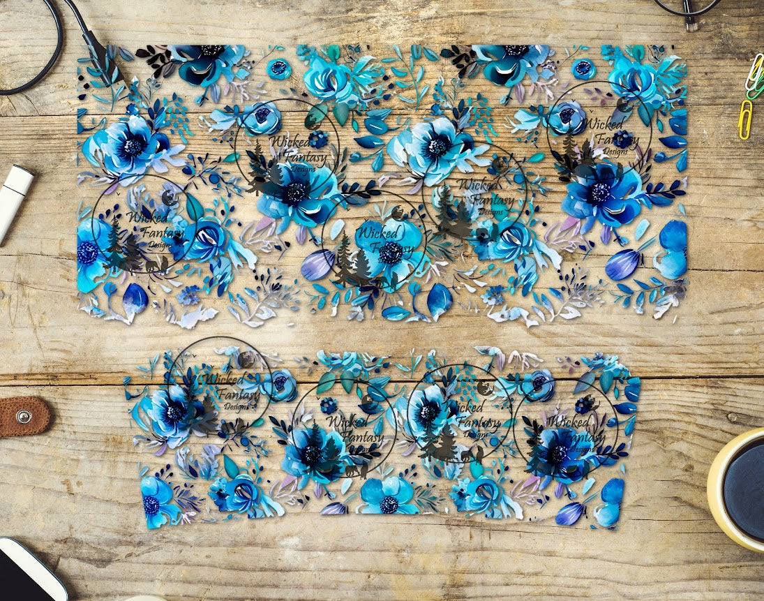 UVDTF Aqua and Royal Blue Floral Arrangement 16oz 40oz Tumbler Wrap