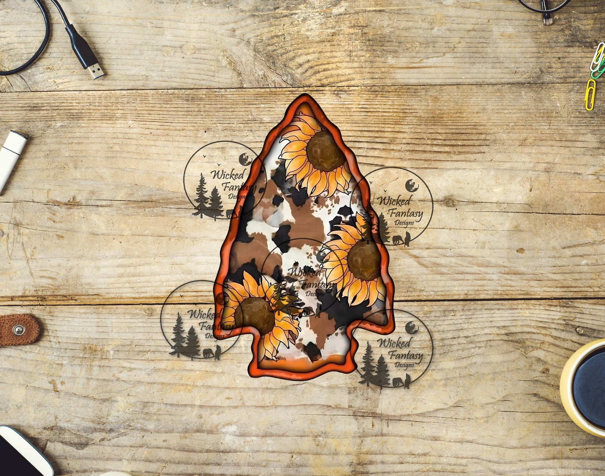 UVDTF Arrow Head with Sunflowers and Cow Print