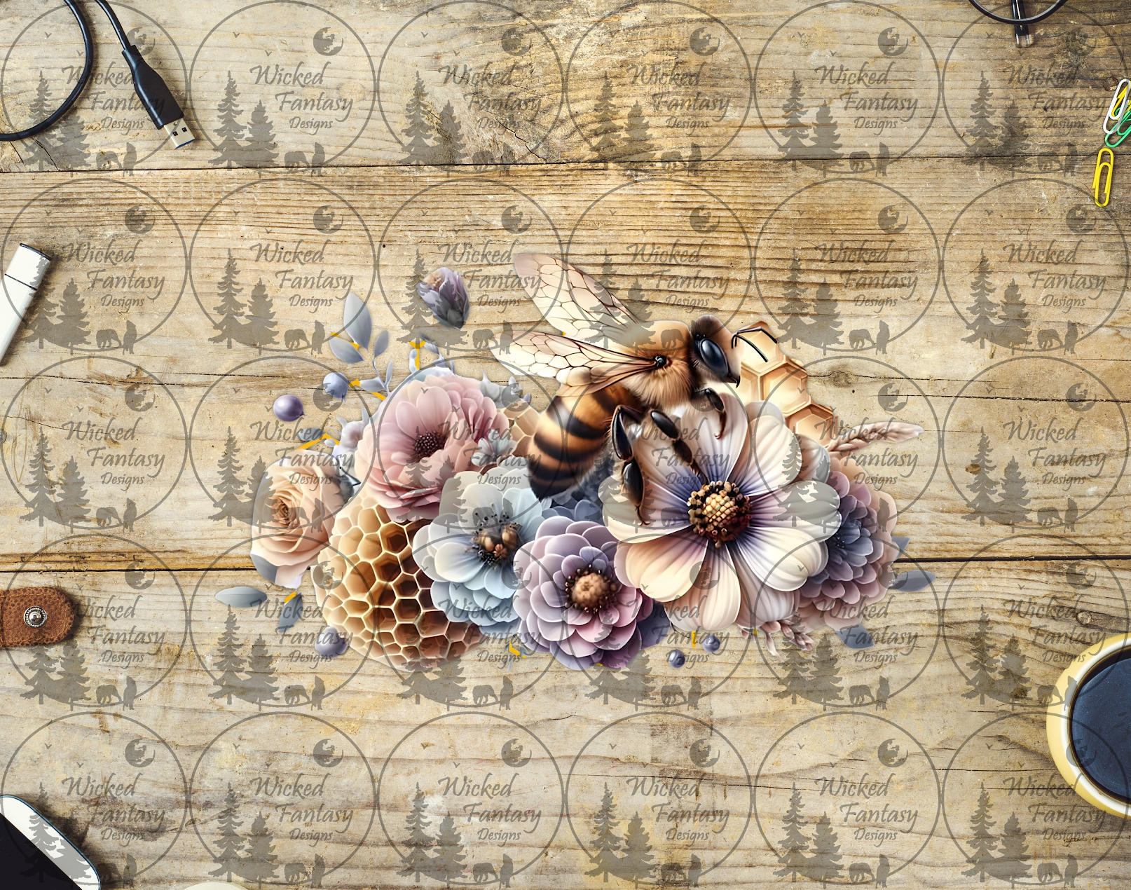 UVDTF Bee with Soft Pastel Flowers