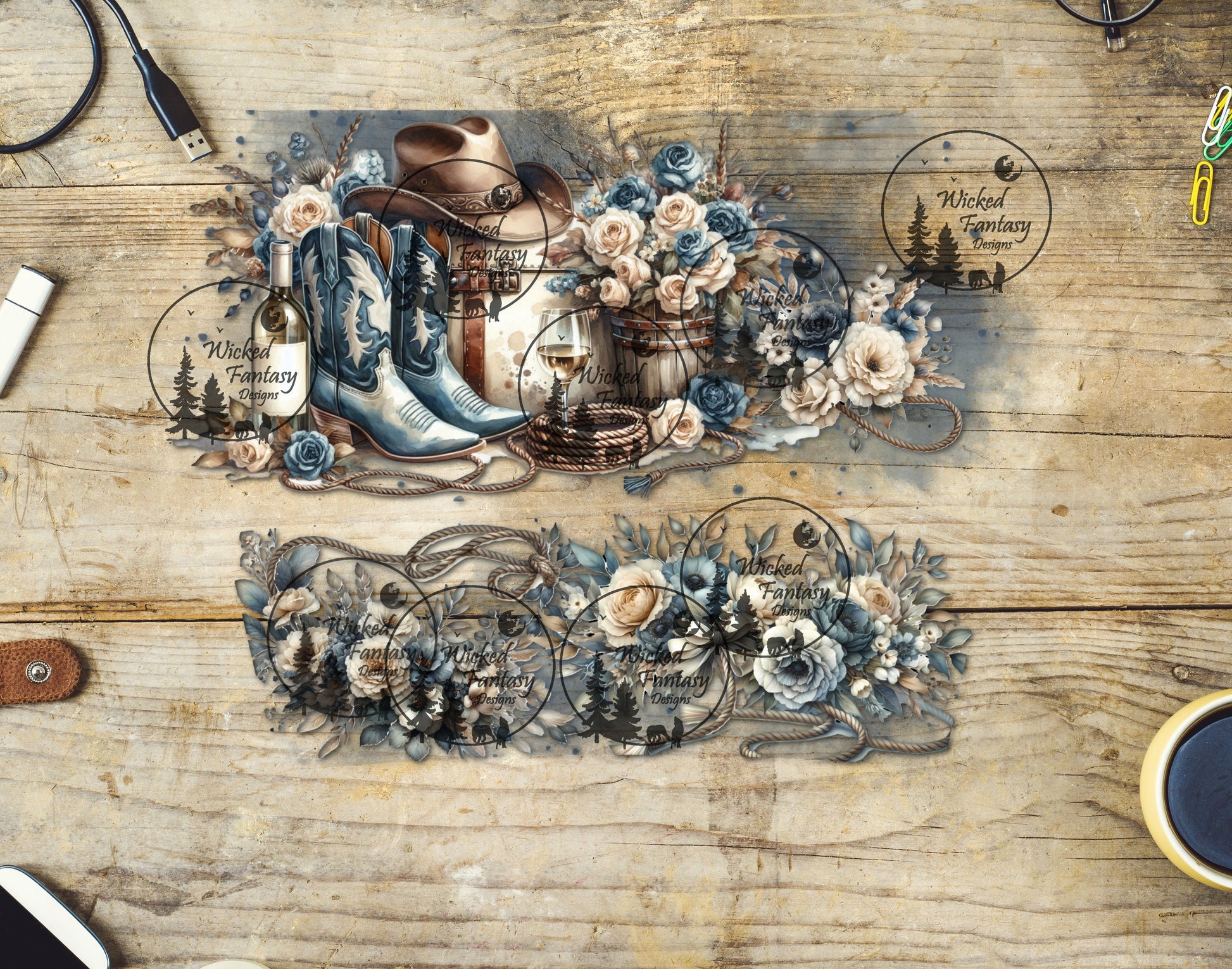 UVDTF Blue and White Cowboy Boots and Floral 16oz 40oz Tumbler Wrap