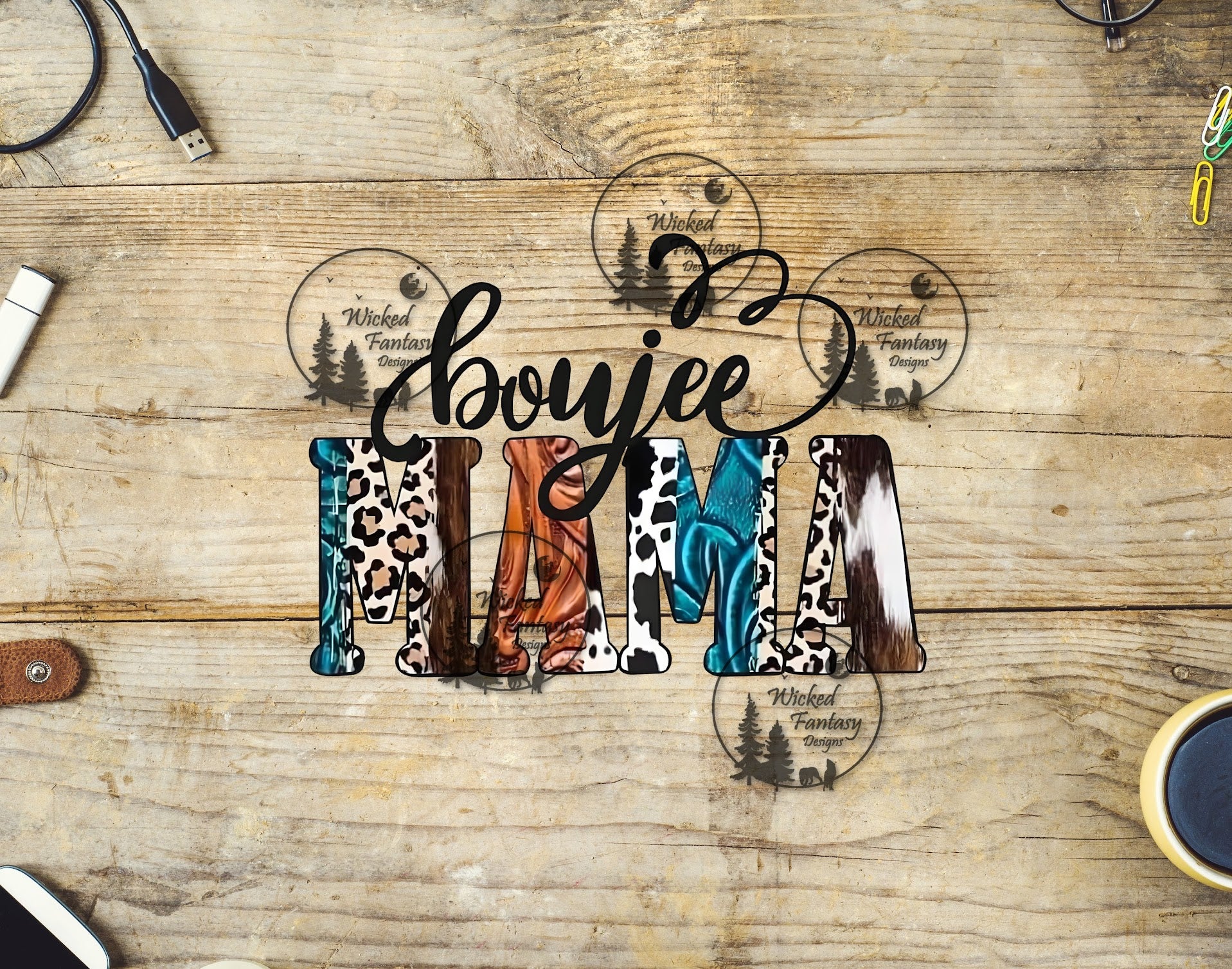 UVDTF Boujee Mama Leopard Print and Cow Hide