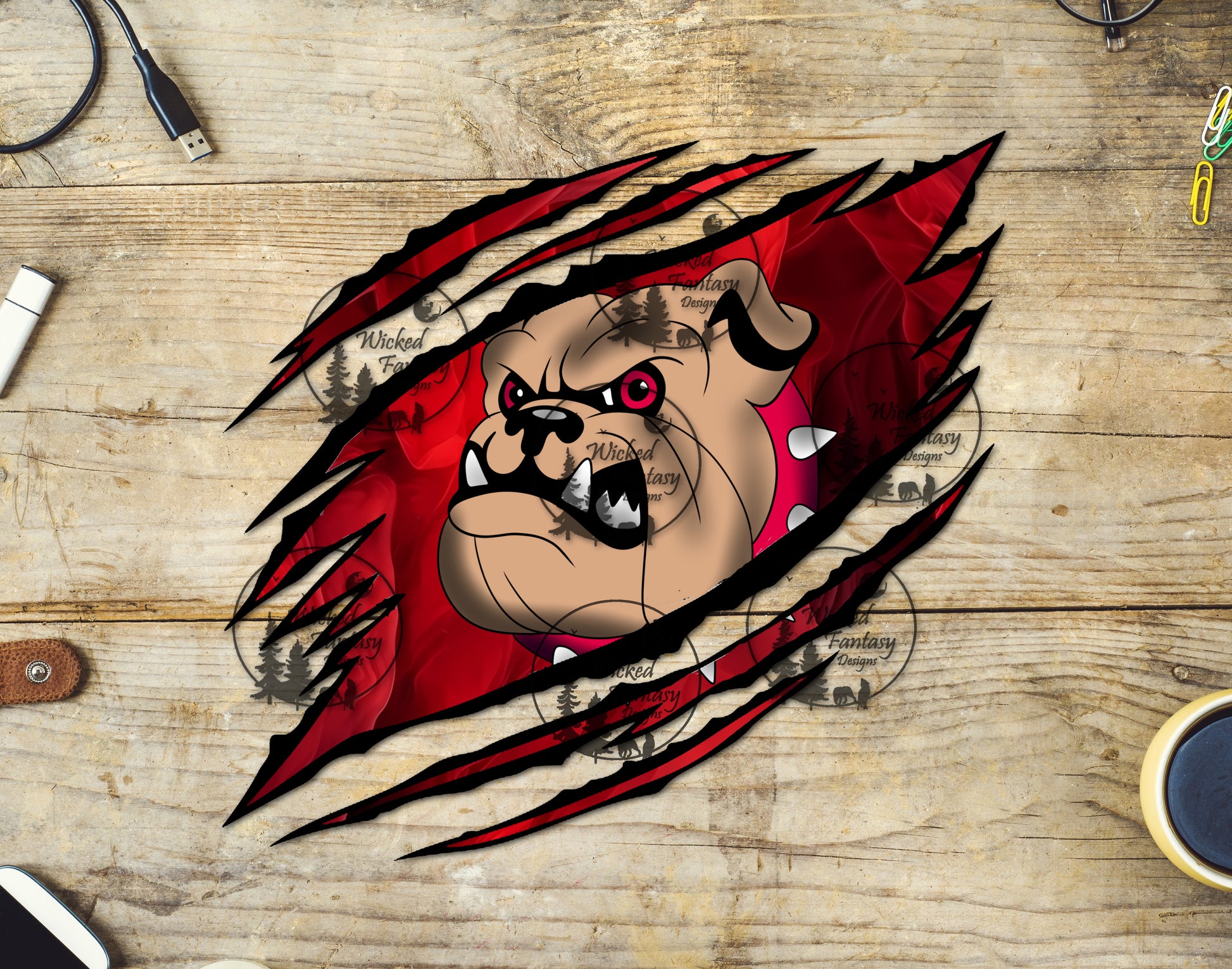 UVDTF Bulldog Claw Rip Red