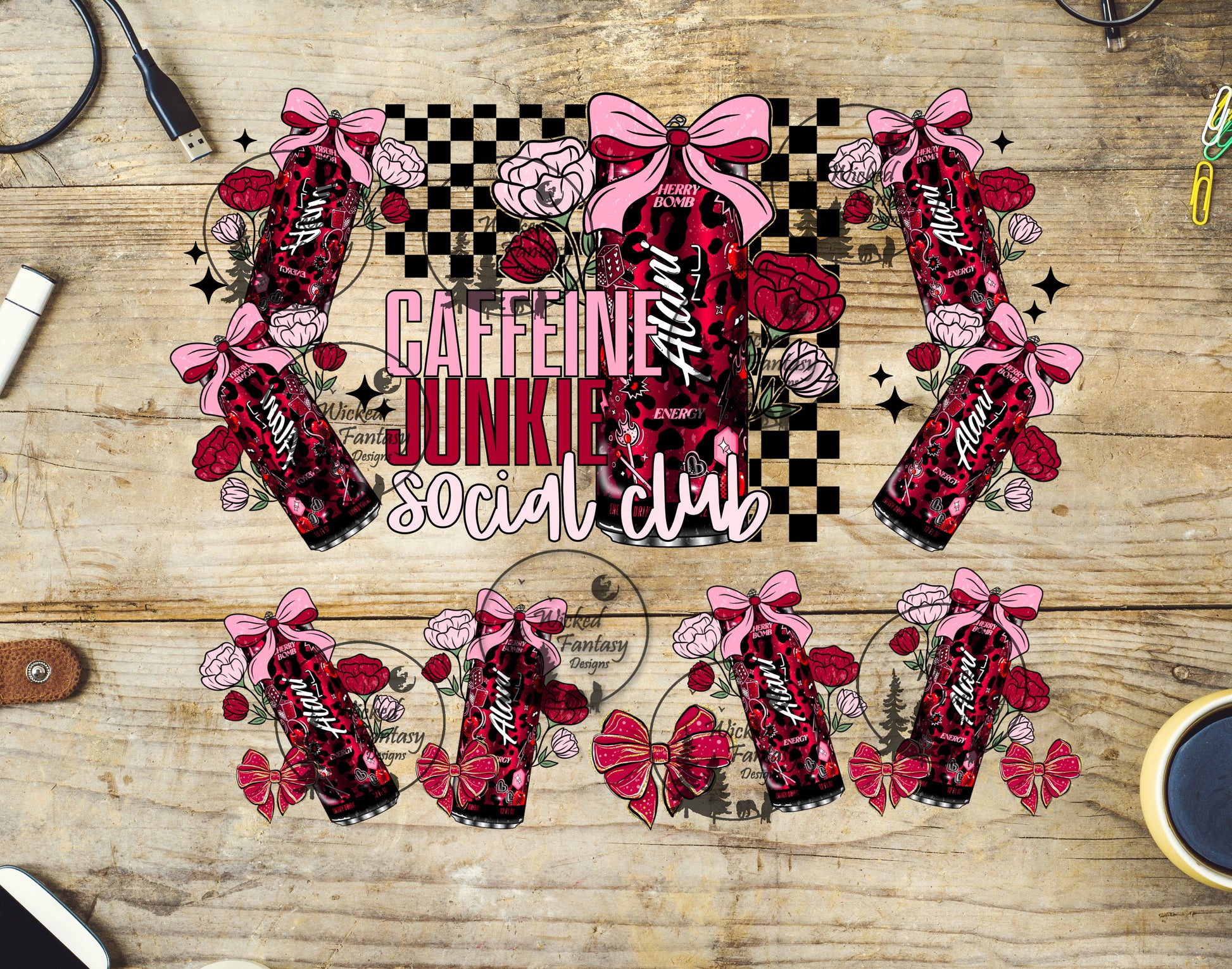 UVDTF Caffeine Junkie Social Club 20oz 30oz 10"x10" Element