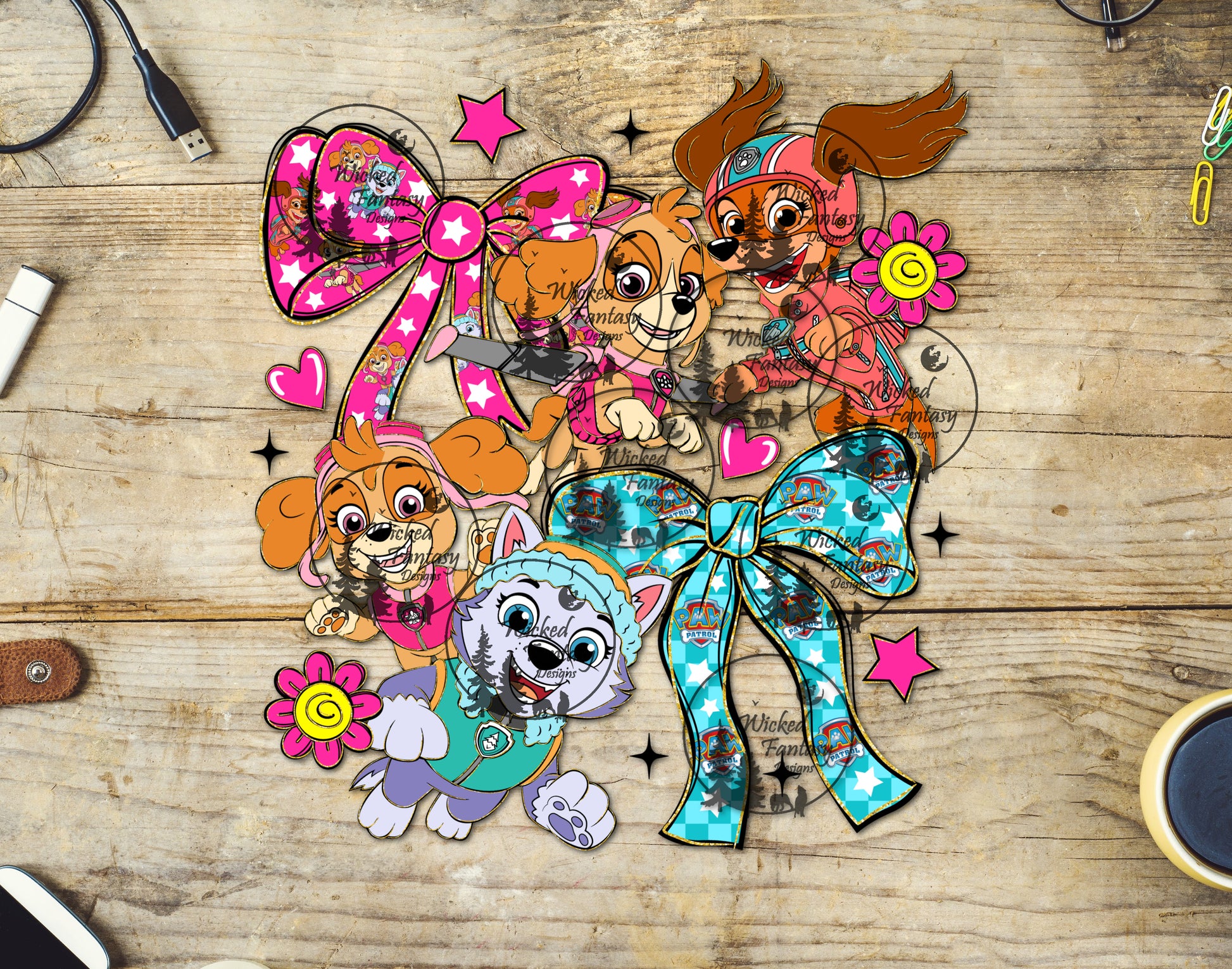 UVDTF Cartoon Dogs and Bows