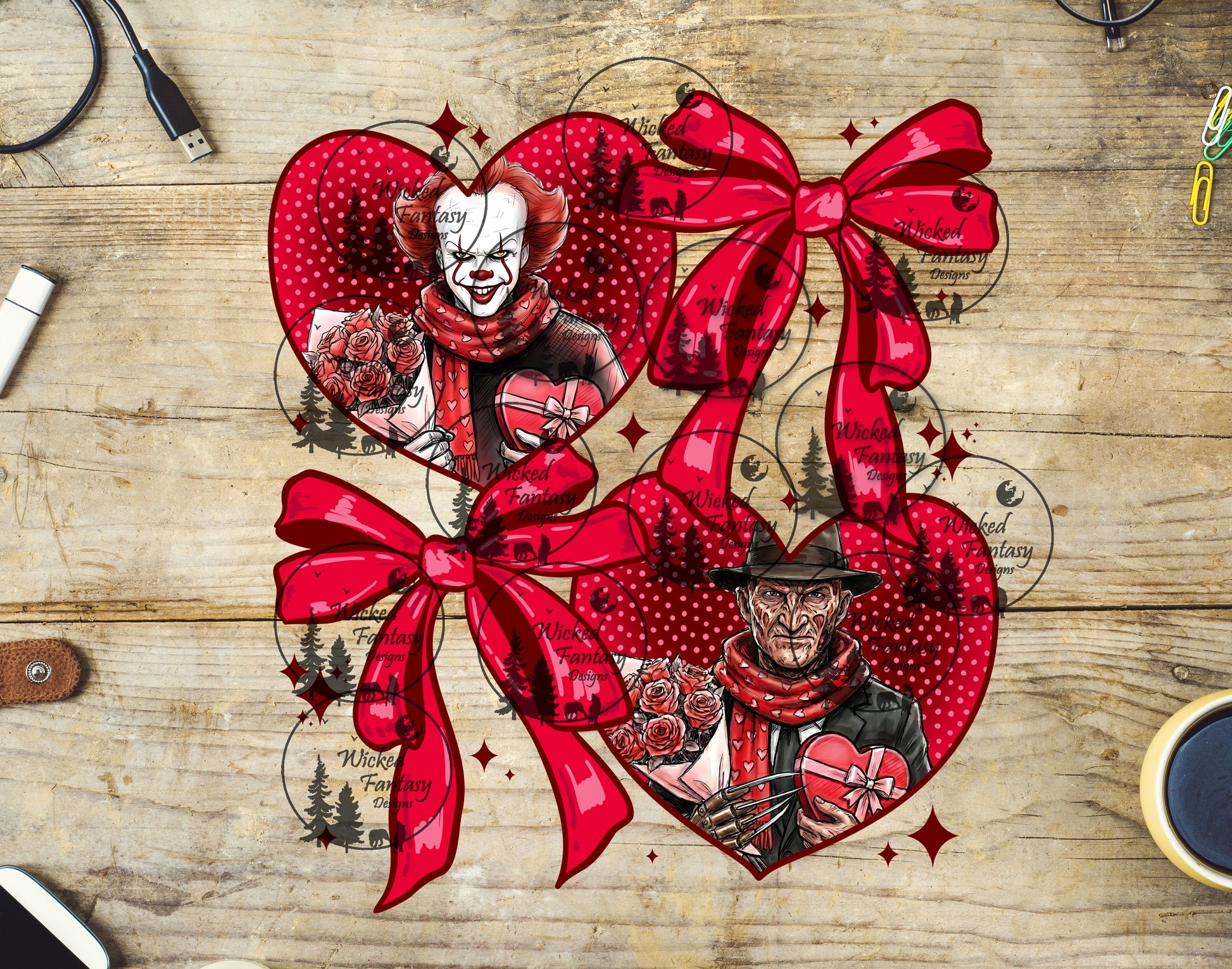 UVDTF Clown Horror Valentines with Bows