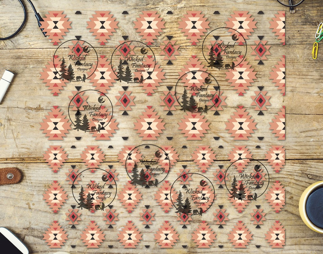 UVDTF Coral and Peach Aztec 20oz 30oz 10"x10" Element