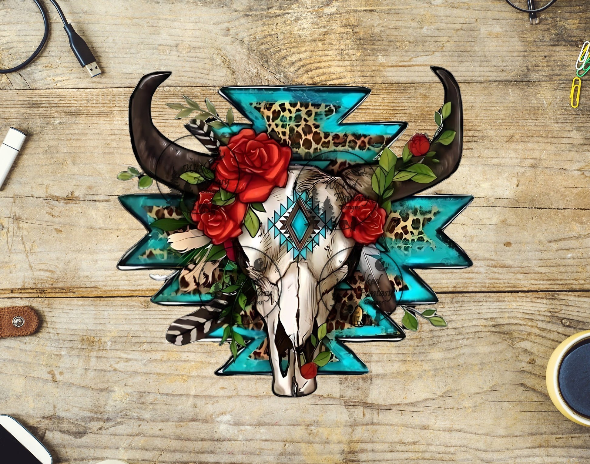 UVDTF Cow Skull with Red Roses