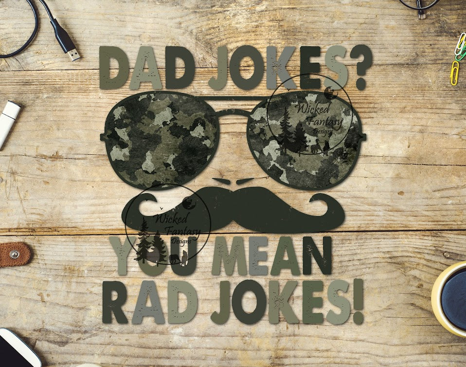 UVDTF Dad Jokes? You Mean Rad Jokes! Camo Sunglasses Mustache 1pc
