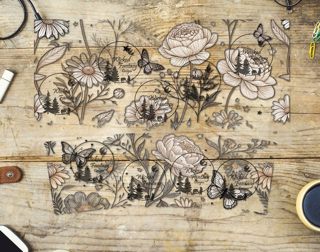 UVDTF Daisy Neutrals and Butterflies 16oz 40oz Tumbler Wrap
