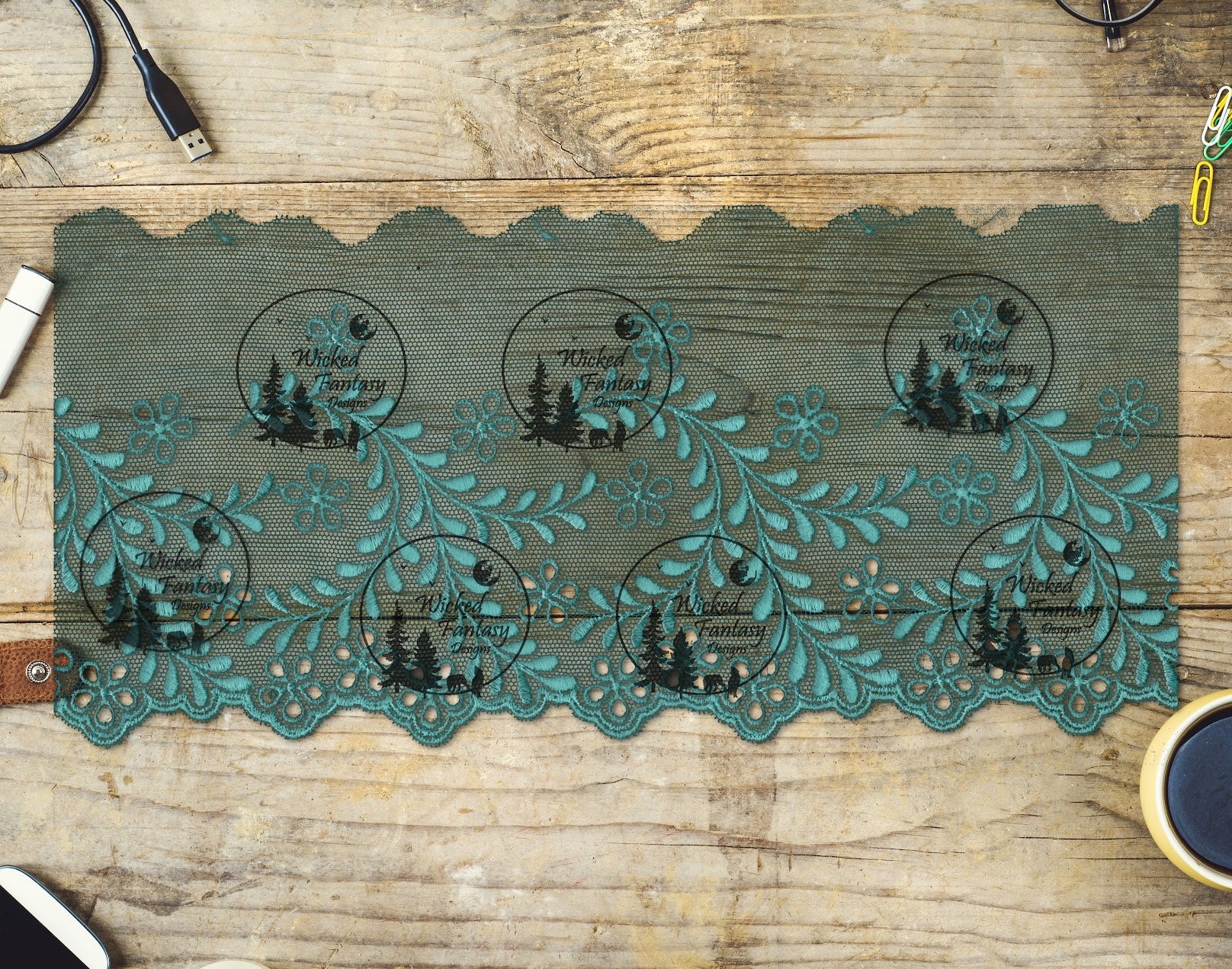 UVDTF Dark Teal Lace Embroidery and Tulle Border Element 11"