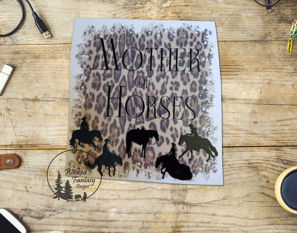 UVDTF Decal Mother of Horses Leopard Print Transparent Background Sticker 1pc