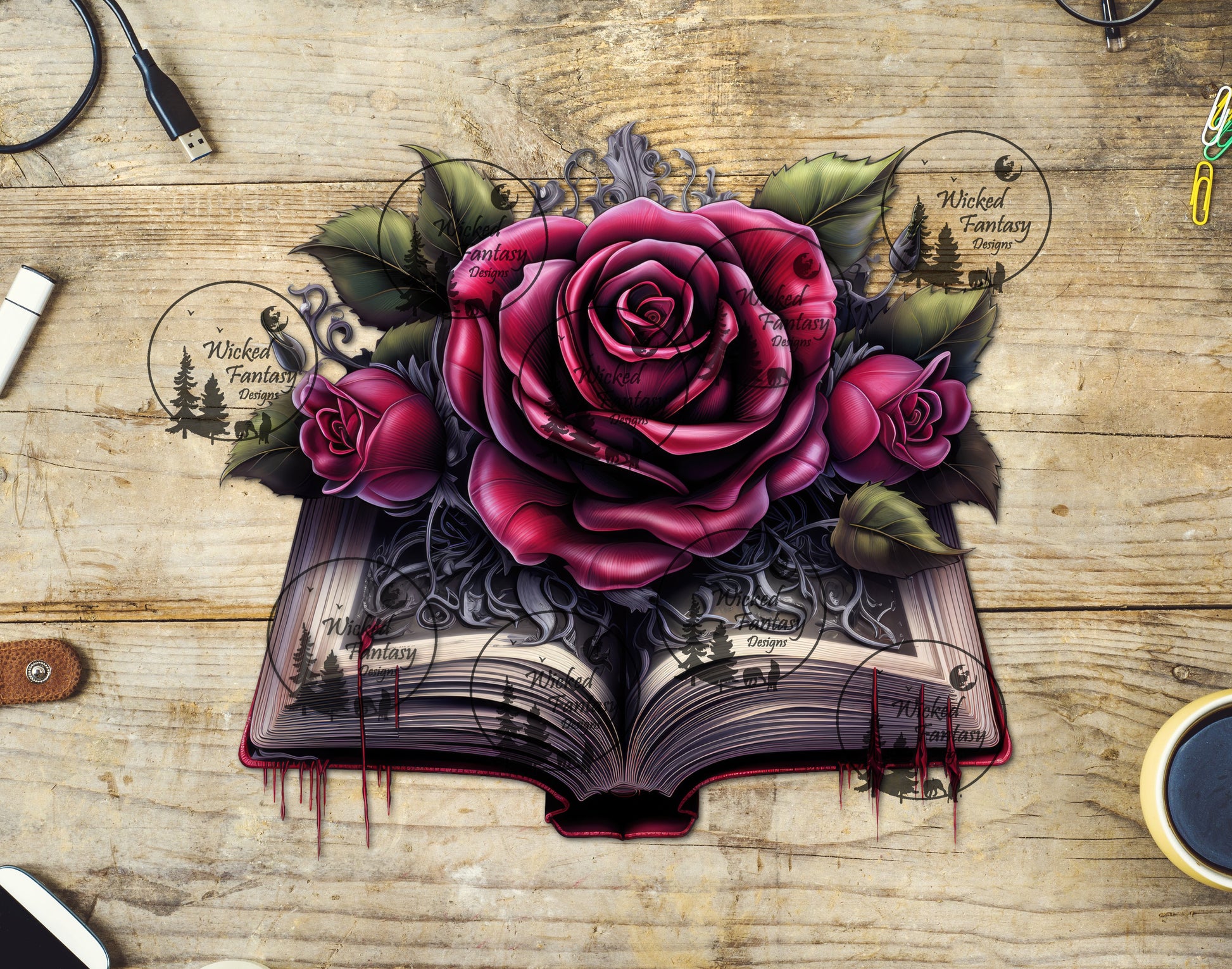 UVDTF Decal Rose in Book Dripping Blood Transparent Background sticker 1pc