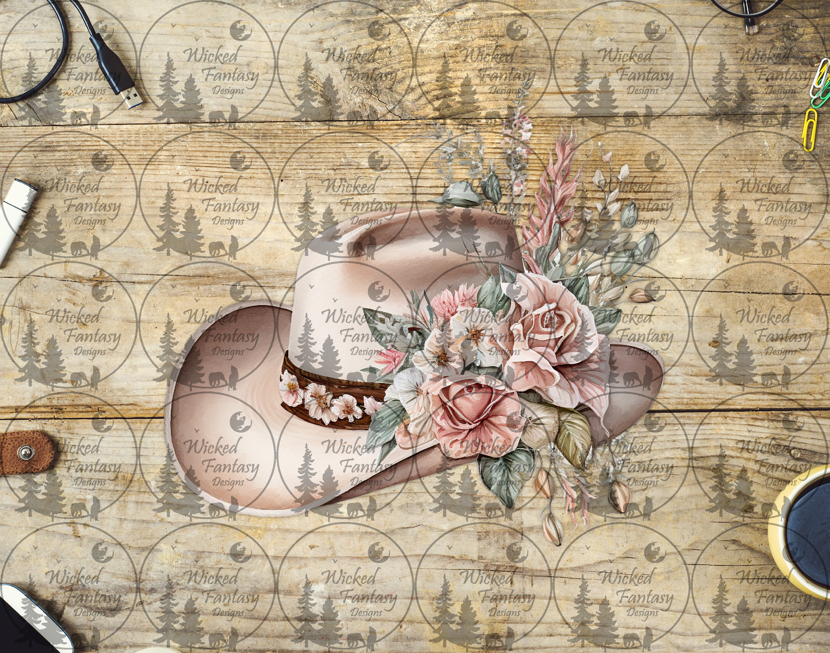 UVDTF Dusty Pink Cowgirl Hat with Flowers