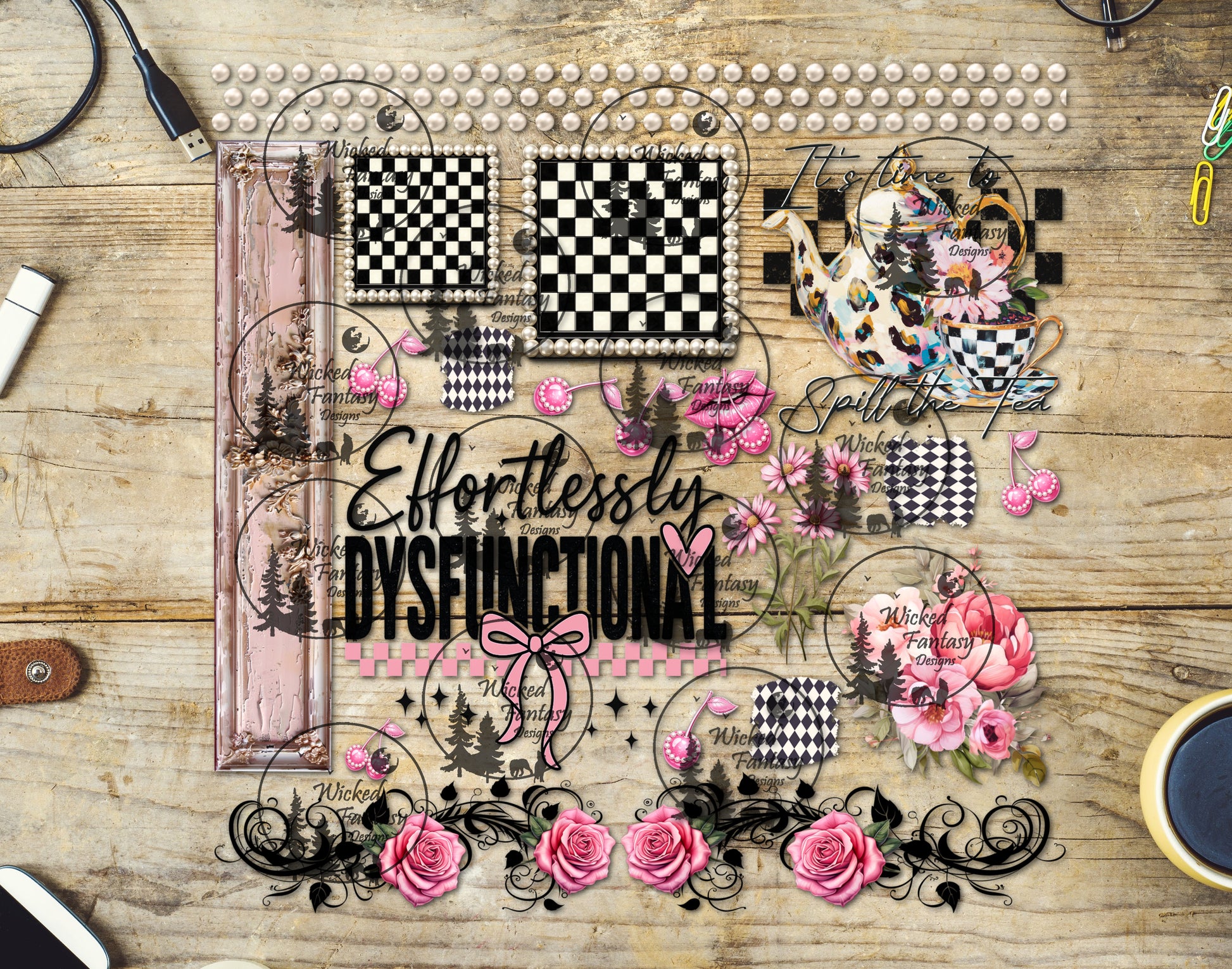 UVDTF Effortlessly Dysfunctional Spill the Tea 11"x11" Element