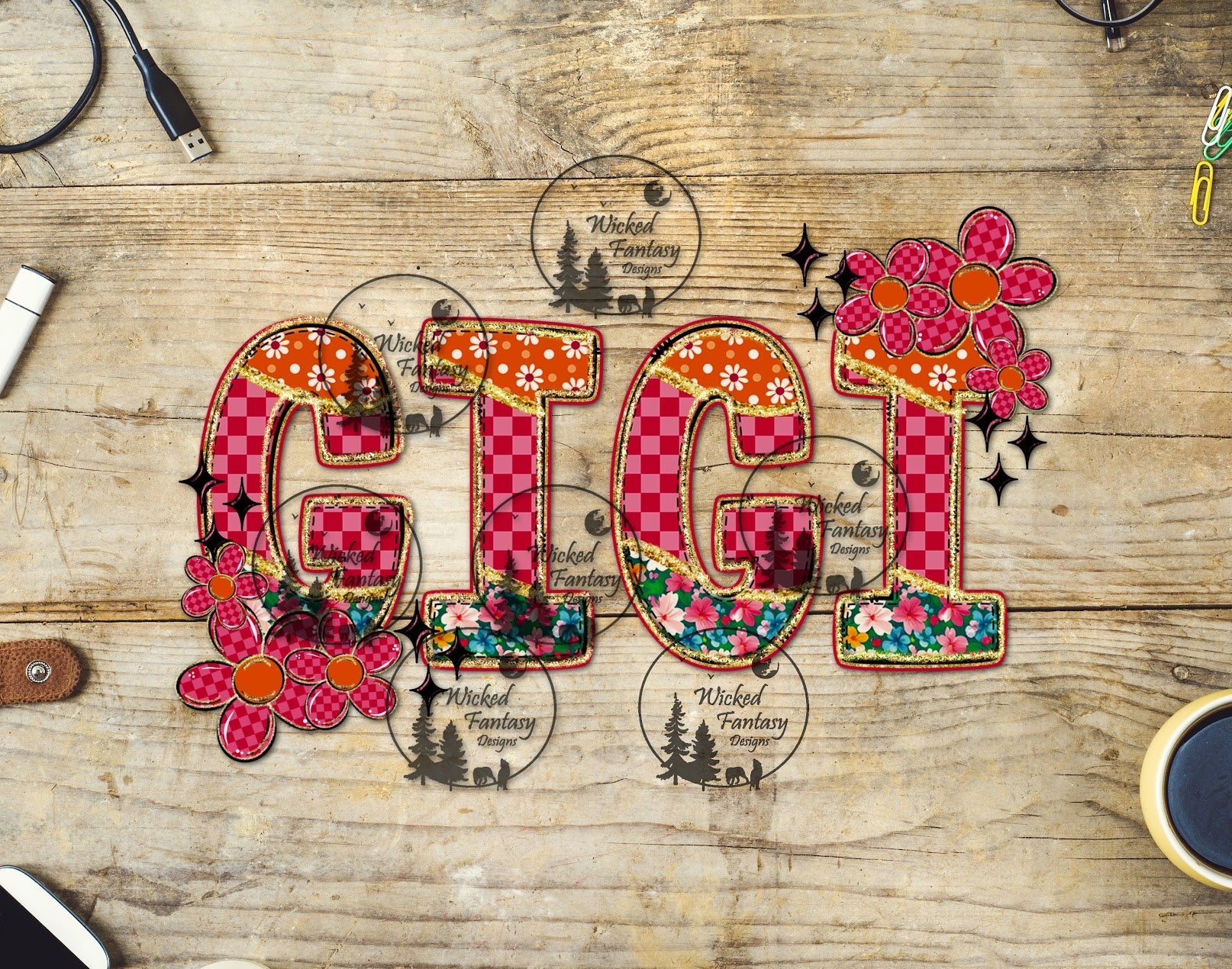 UVDTF Gigi Pink Checkered and Retro Flowers
