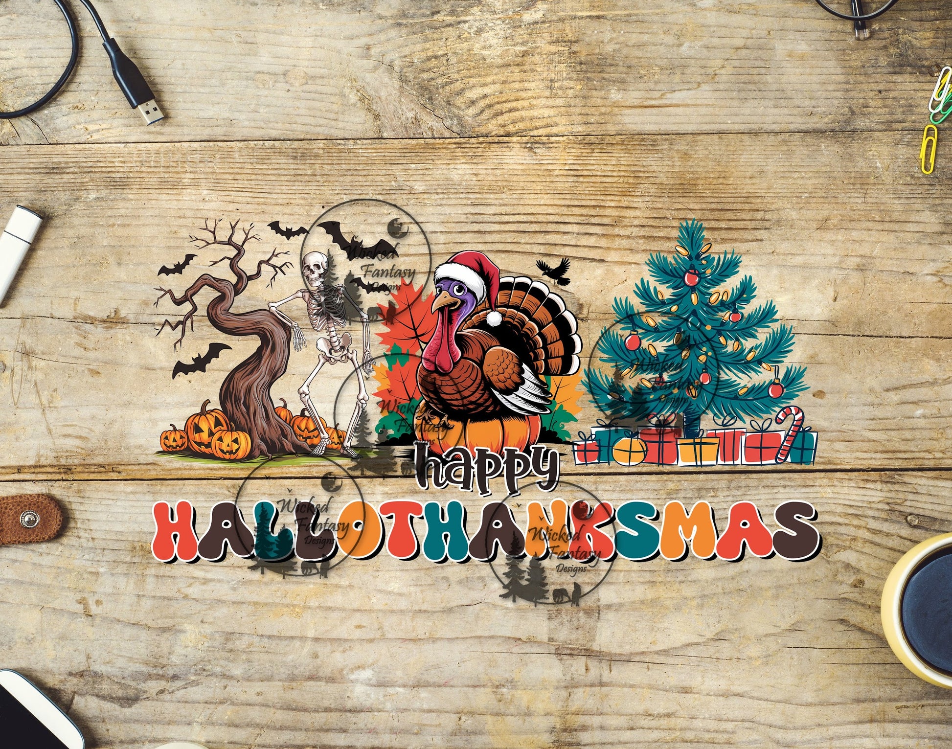 UVDTF Happy HalloThankMas Skeleton Turkey and Tree