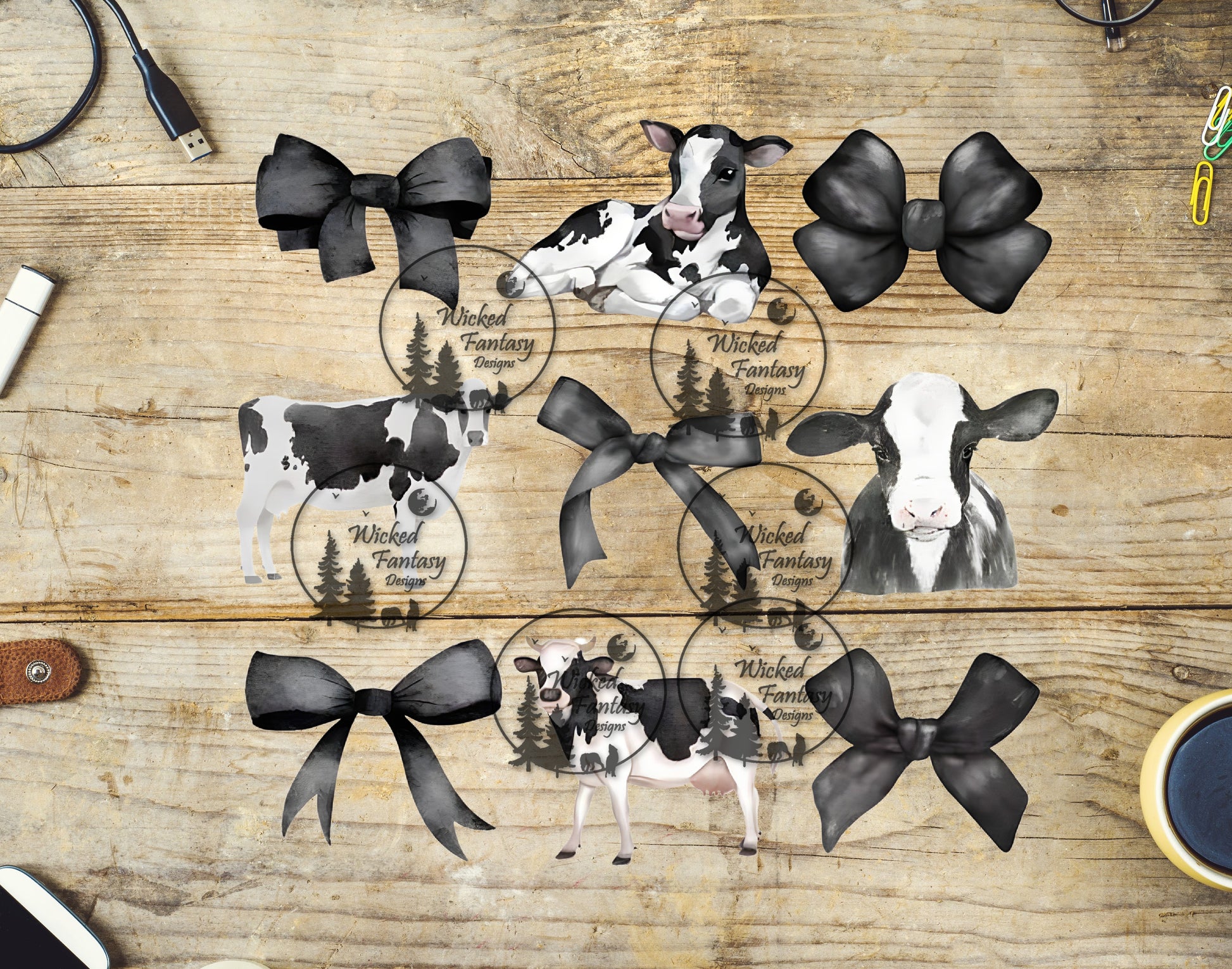 UVDTF Holstein Cows and Bows Elements 6"x7"