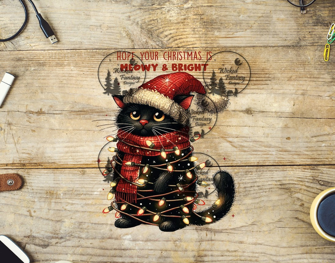 UVDTF Hope Your Christmas is Meowy and Bright Cat with Lights