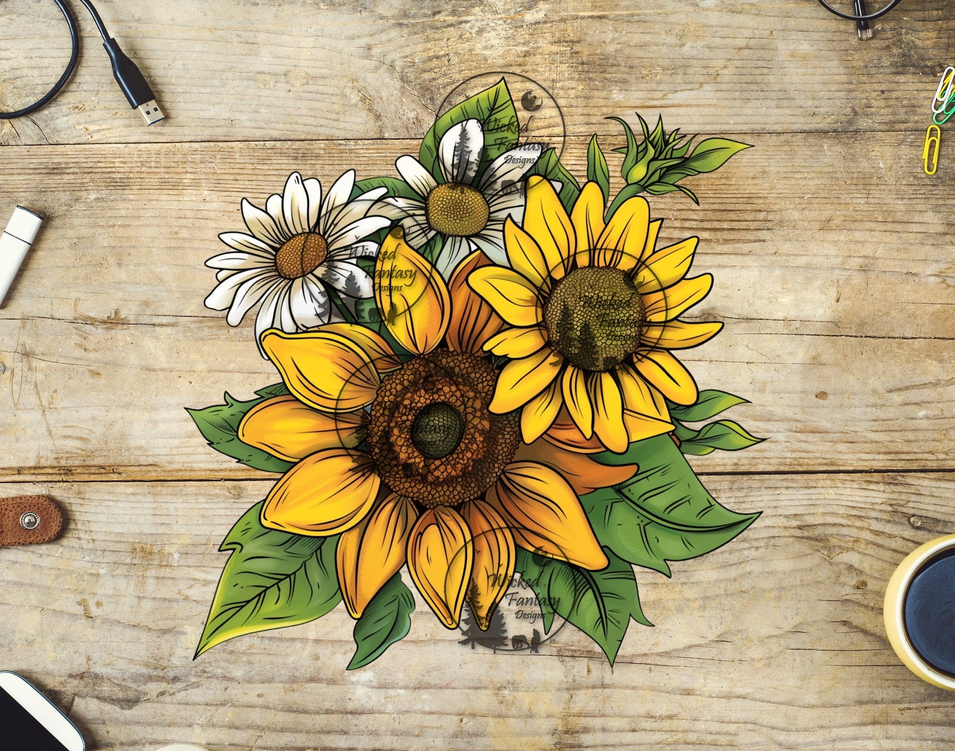 UVDTF Illustrated Sunflowers and White Dasies