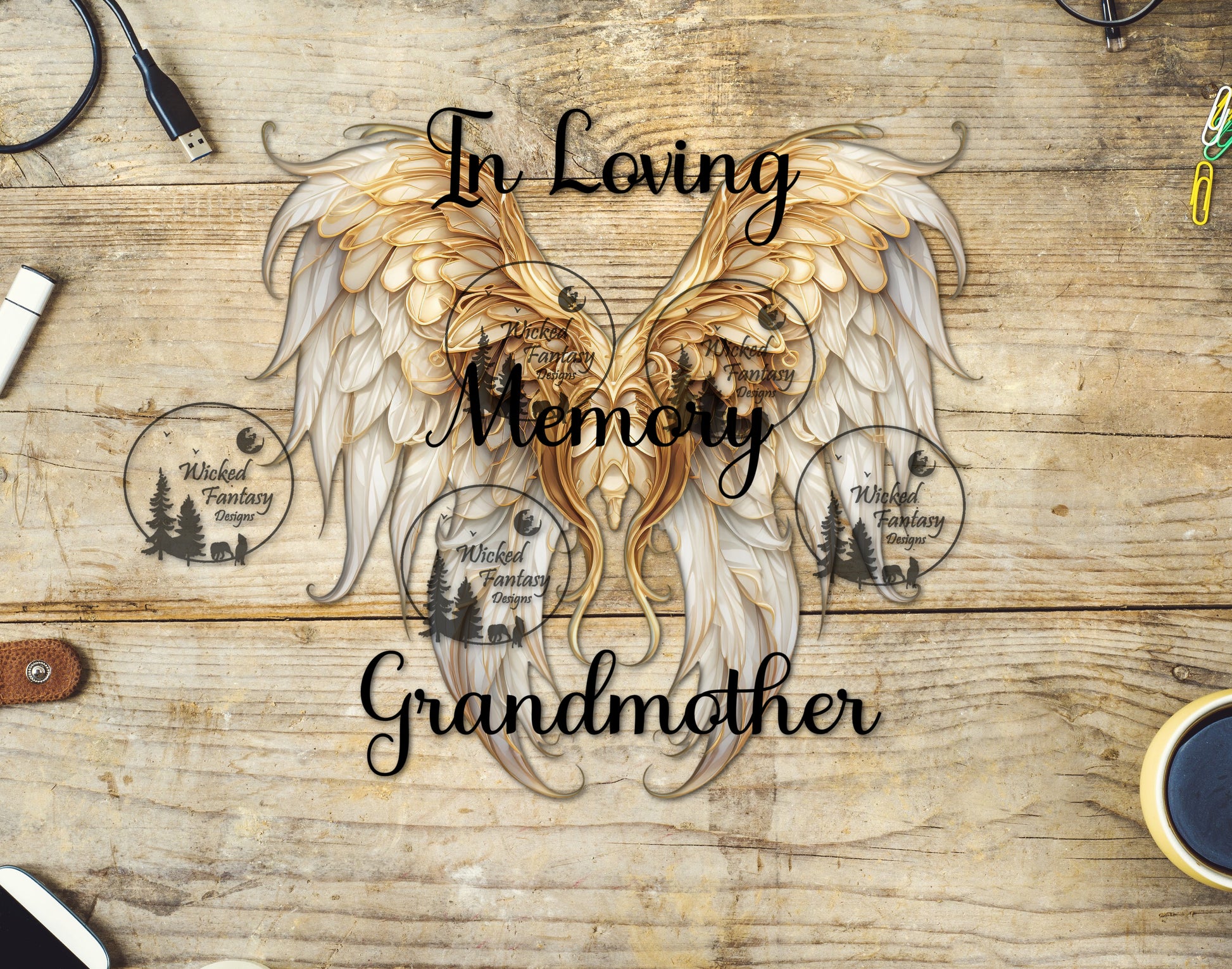 UVDTF In Loving Memory Grandmother Gold Angel Wings