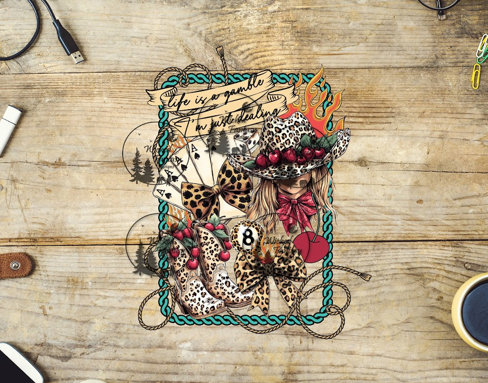 UVDTF Life is a Gamble I'm Just Dealing Cherries and Leopard Print