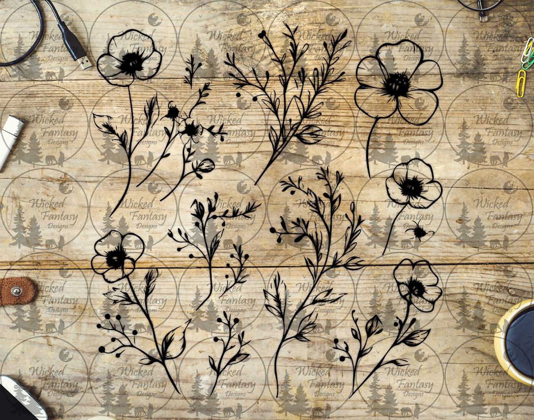 UVDTF Line Art Flowers 10x10" Custom Colors