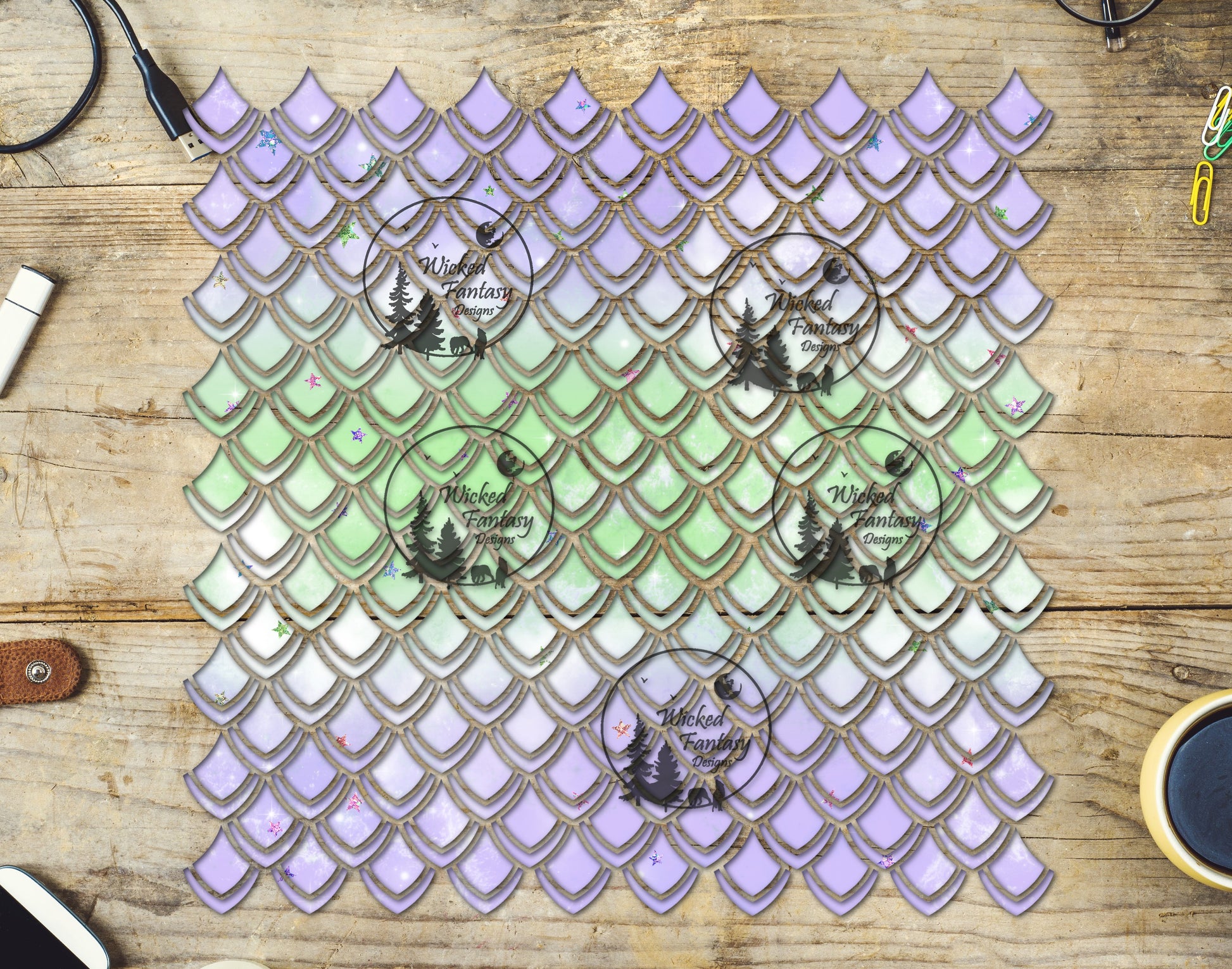 UVDTF Pastel Purple Green Dragon Scales 10"x10" Element