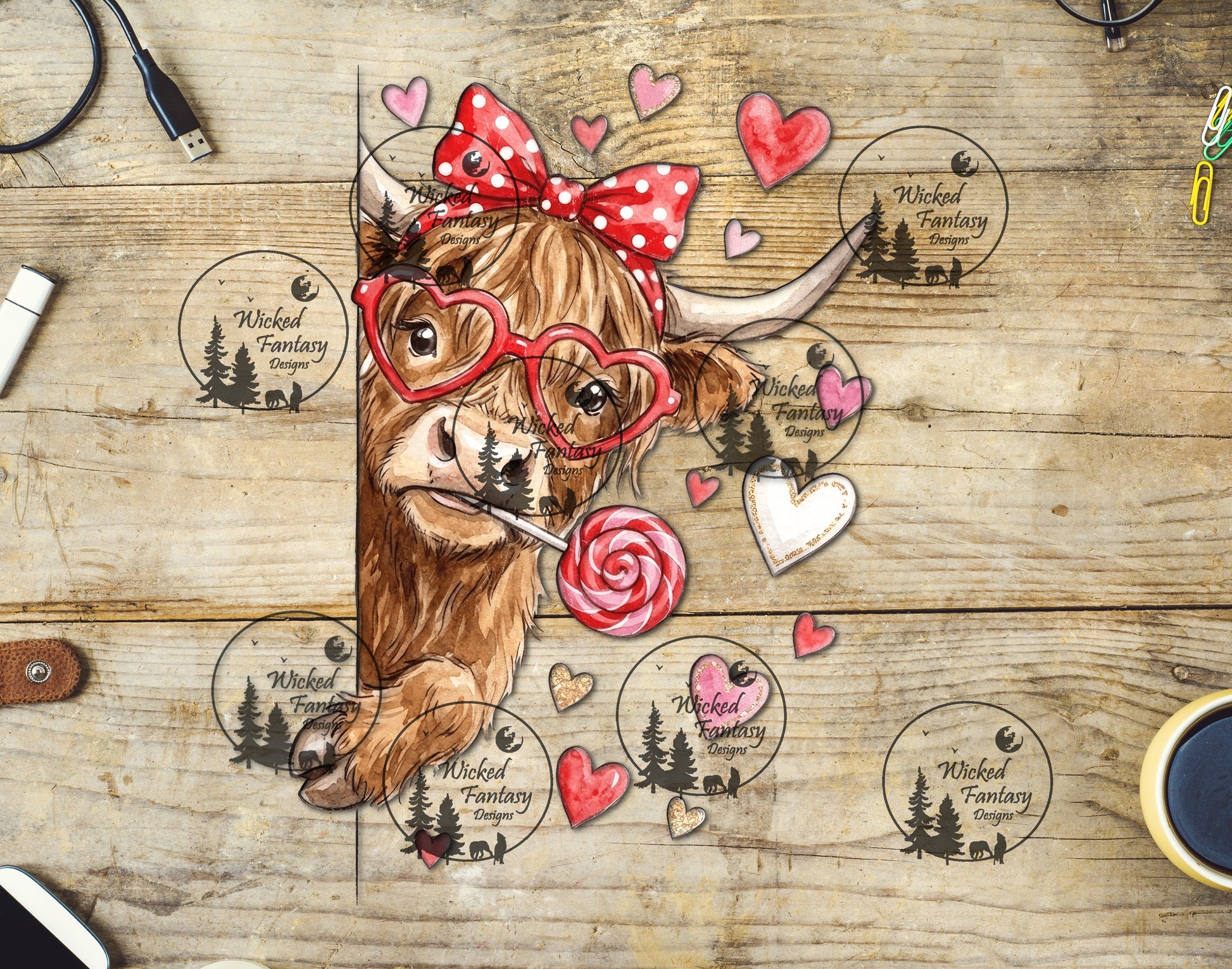 UVDTF Peeking Hearts Highland Cow with Bow