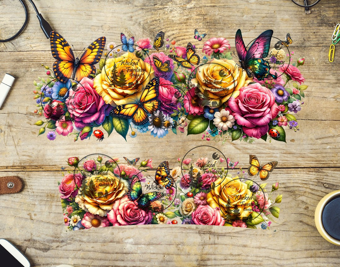 UVDTF Pink and Yellow Roses 16oz 40oz Tumbler Wrap