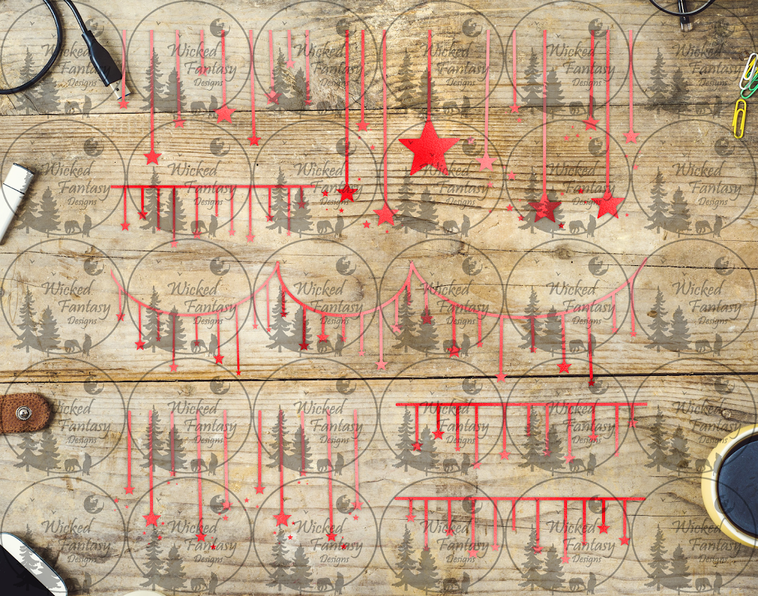 UVDTF Red Hanging Stars 11x11" Element