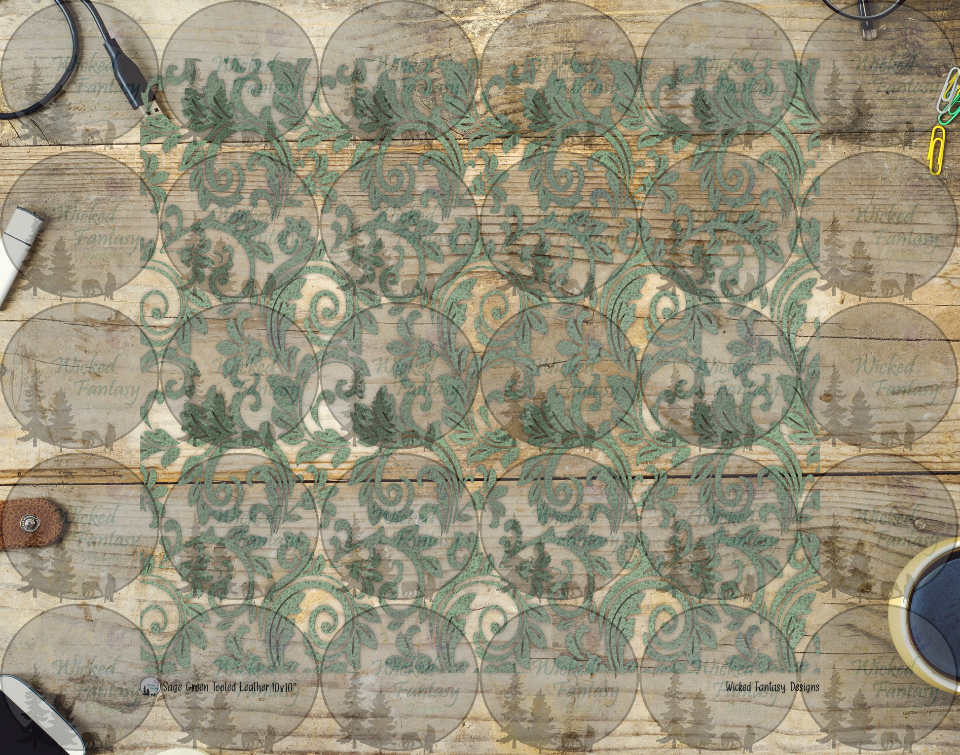 UVDTF Sage Green Textured Tooled Leather 20oz 30oz 10"x10"
