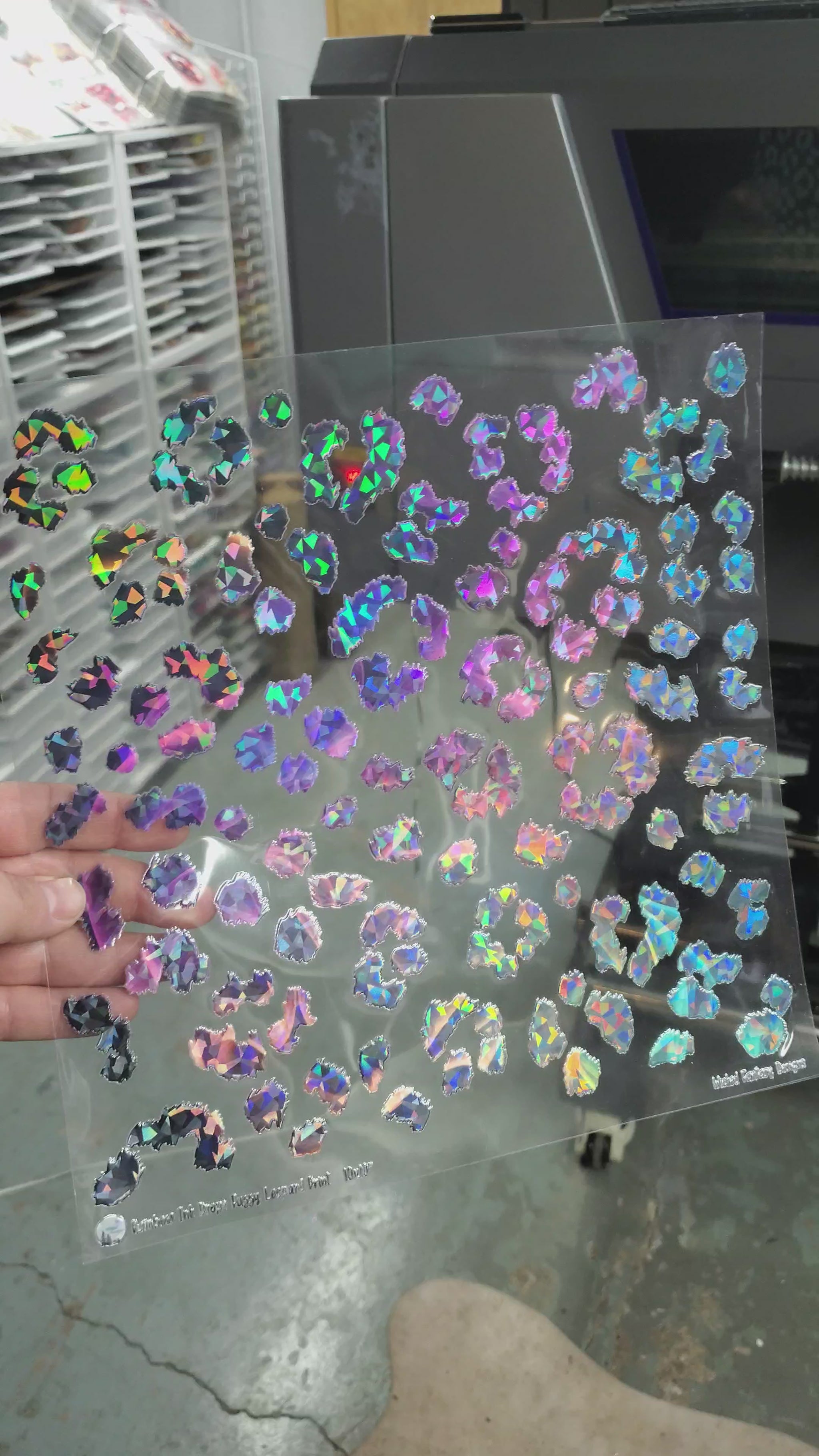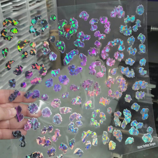 UVDTF Shattered Holographic Rainbow Ink Drops Leopard Print 10"x10"
