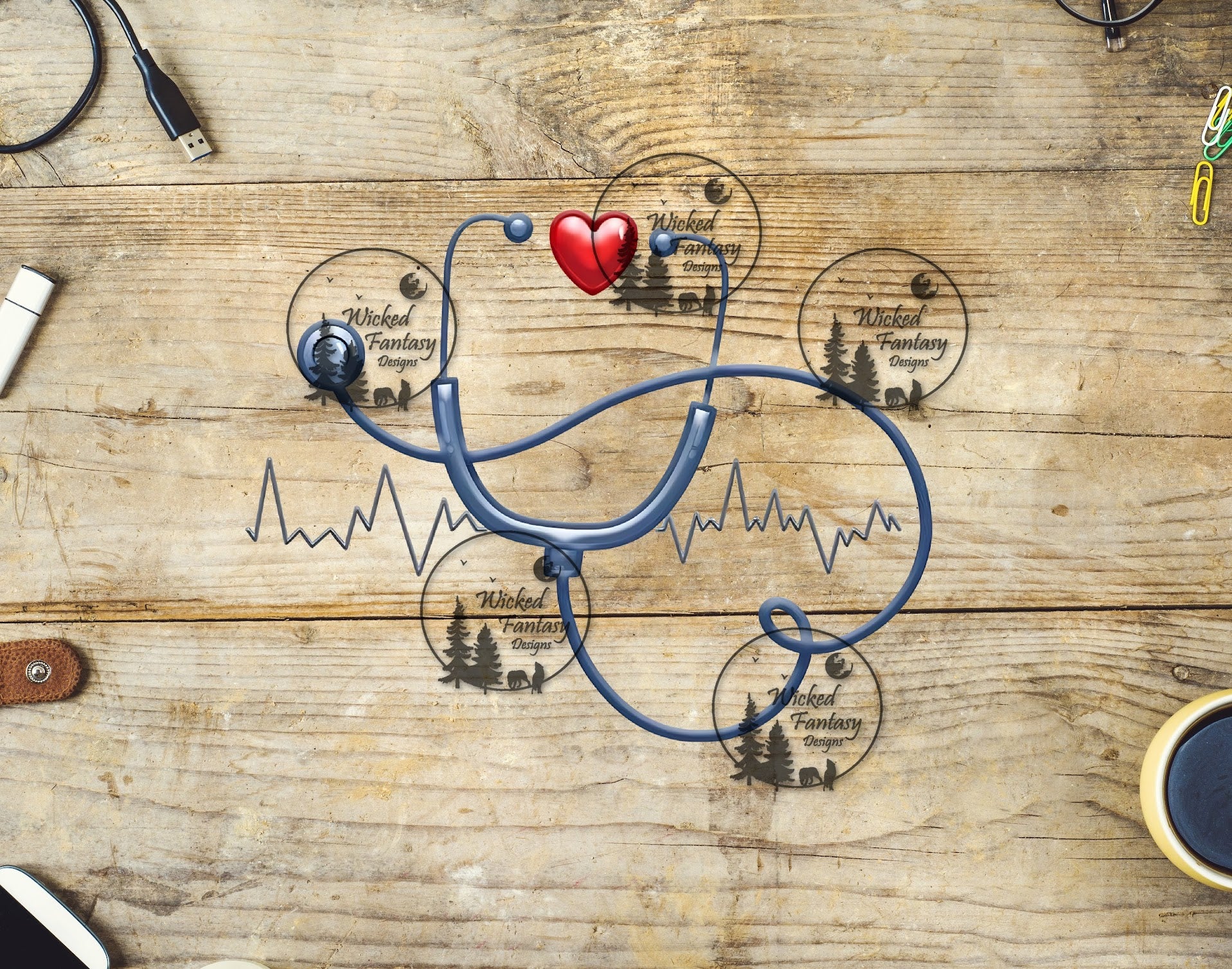 UVDTF Stethoscope and Heart with Rhythm