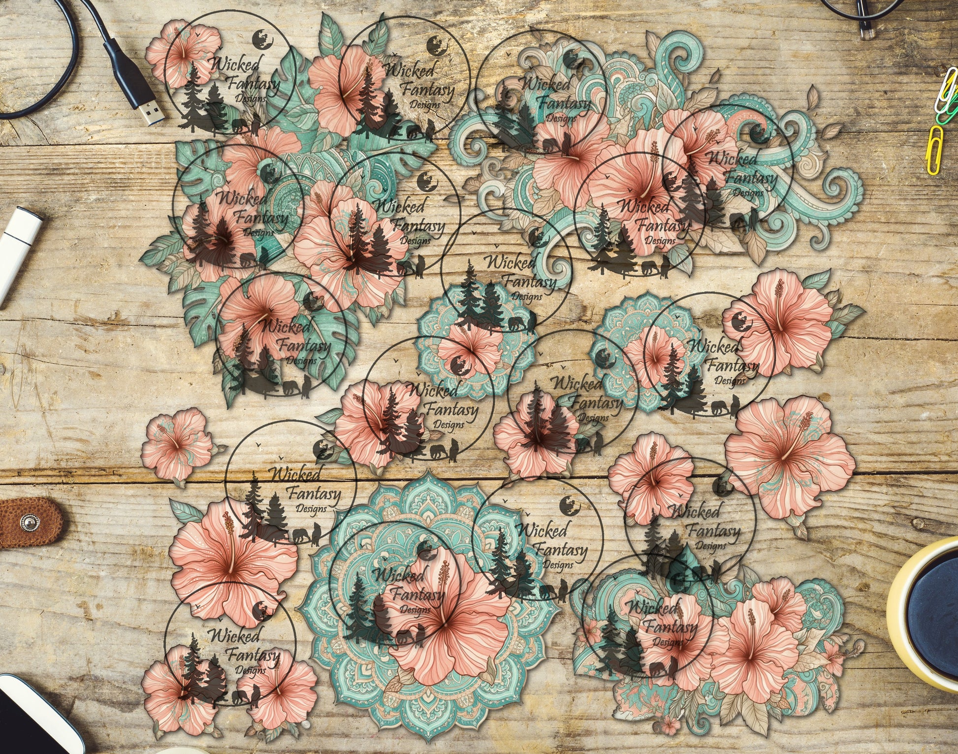 UVDTF Tropical Hibiscus and Mandalas 12x12" Element Sheet