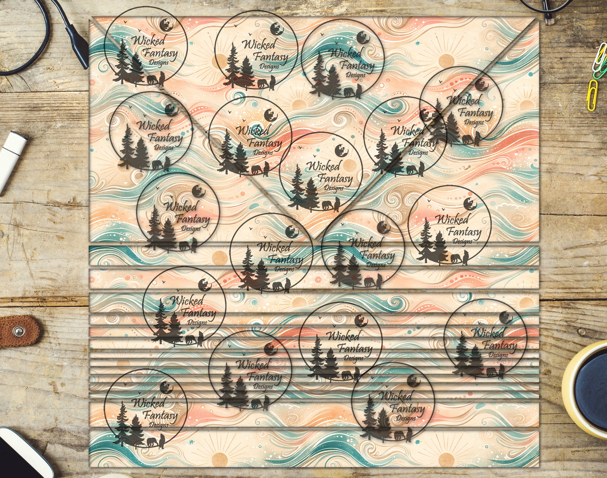 UVDTF Tropical Waves and Swirls Triangles and Striping 20oz 30oz 10"x10" Element Sheet