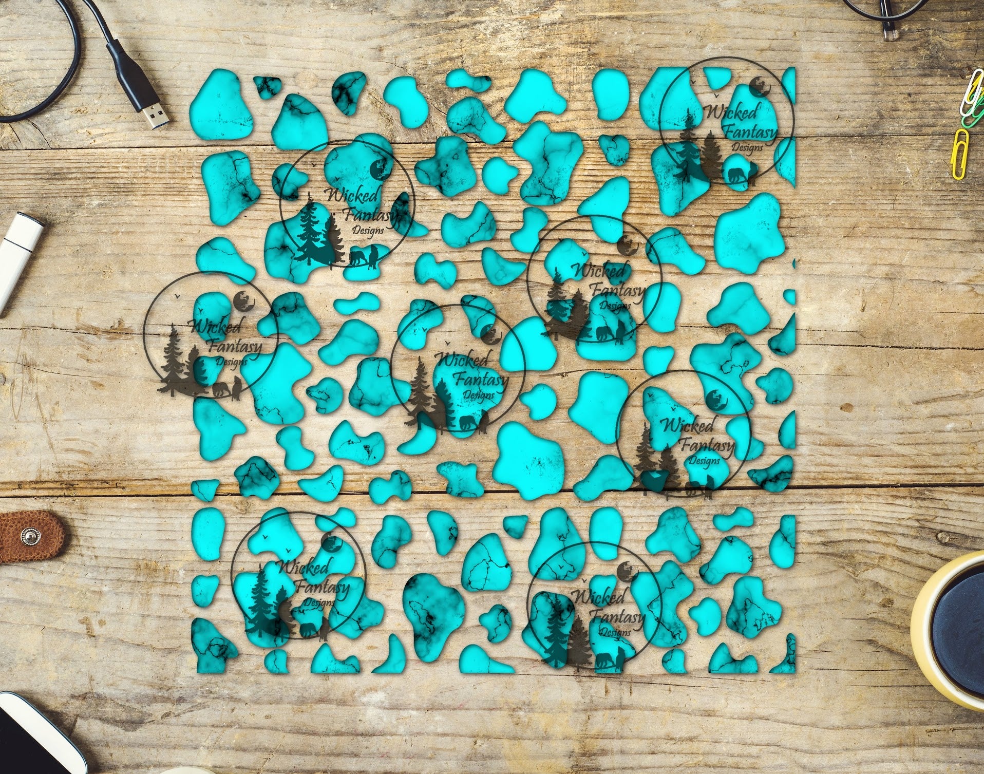 UVDTF Turquoise Rounded Cow Print 20oz 30oz 10"x10" Element