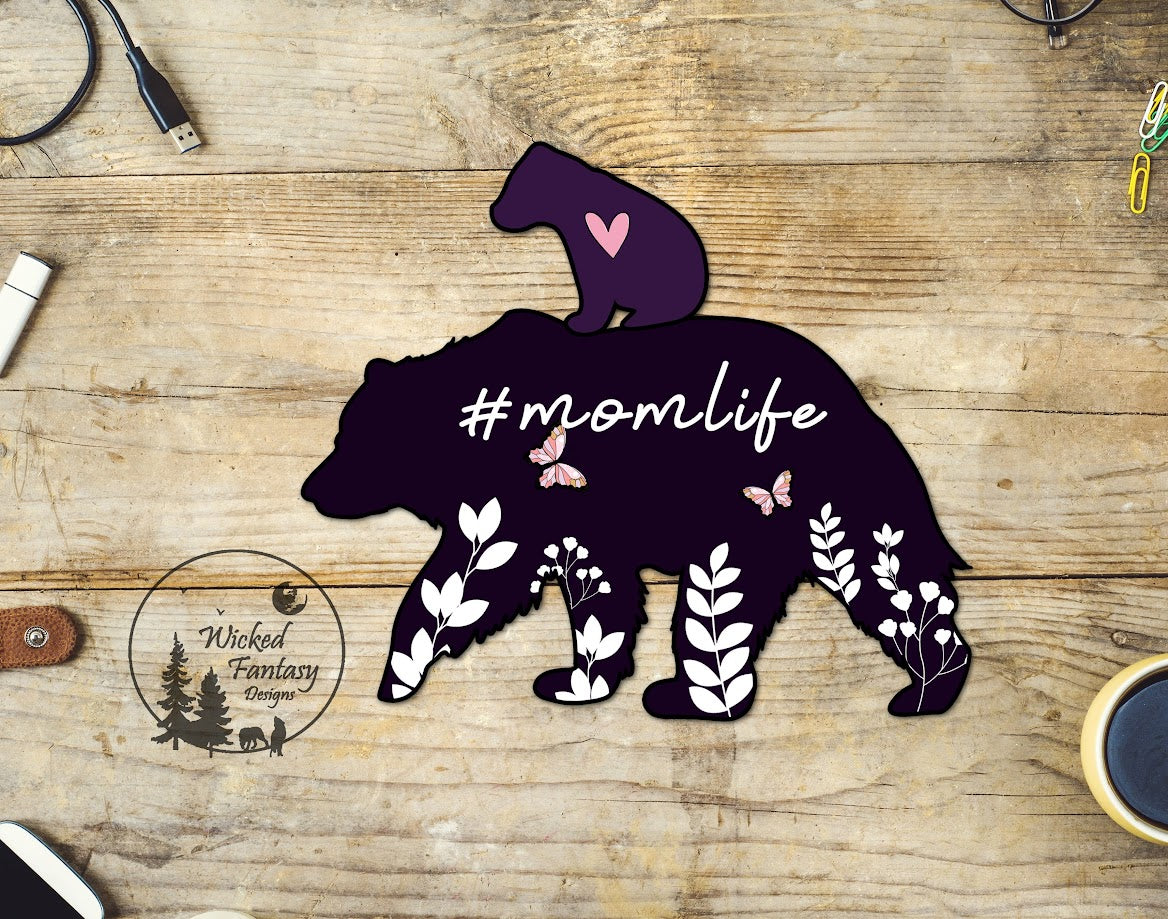 UVDTF Mom Life Bear and Cub Flowers Butterflies 1pc